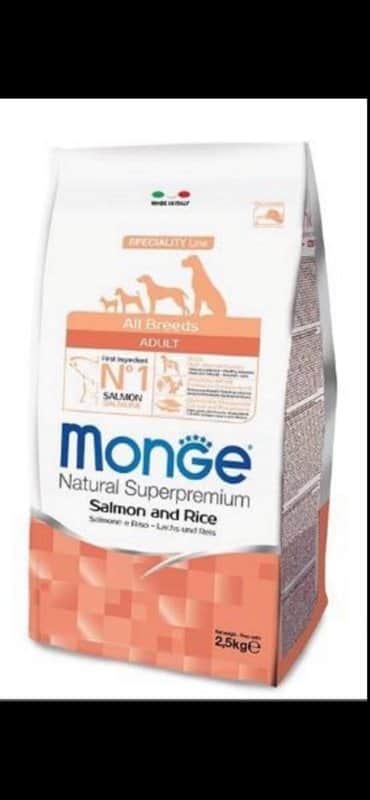 מונג' בטעם סלמון ואורז,לכלבים בוגרים מתאים לכלבים מכל הגזעים.
