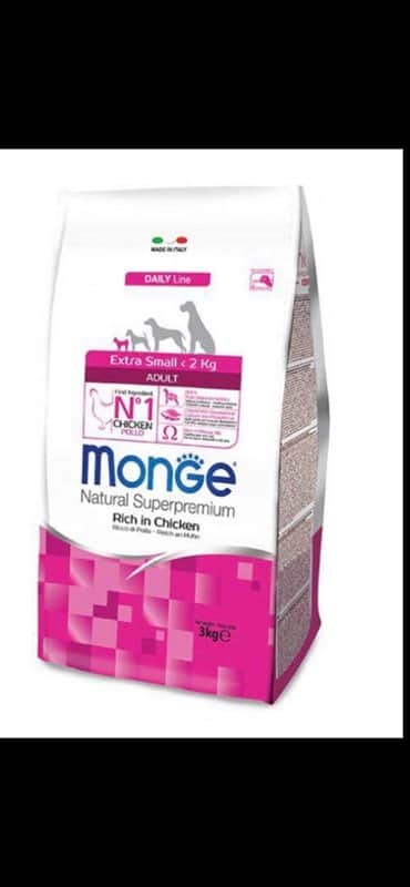 מונג' 3 ק"ג לכלבים בוגרים מגזע זעיר משקל בוגר 2ק"ג בטעם עוף ואורז.